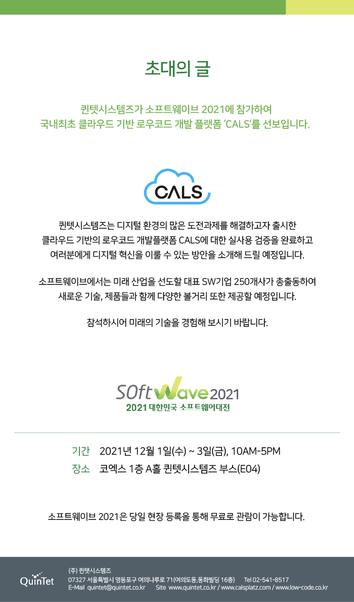 퀸텟시스템즈가 소프트웨이브 2021에 여러분을 초대합니다😉